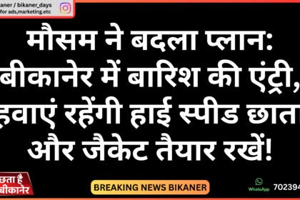 बीकानेर में मौसम का मूड स्विंग! बारिश की दस्तक, तेज हवाओं के साथ येलो अलर्ट—छाता संभालिए जनाब
