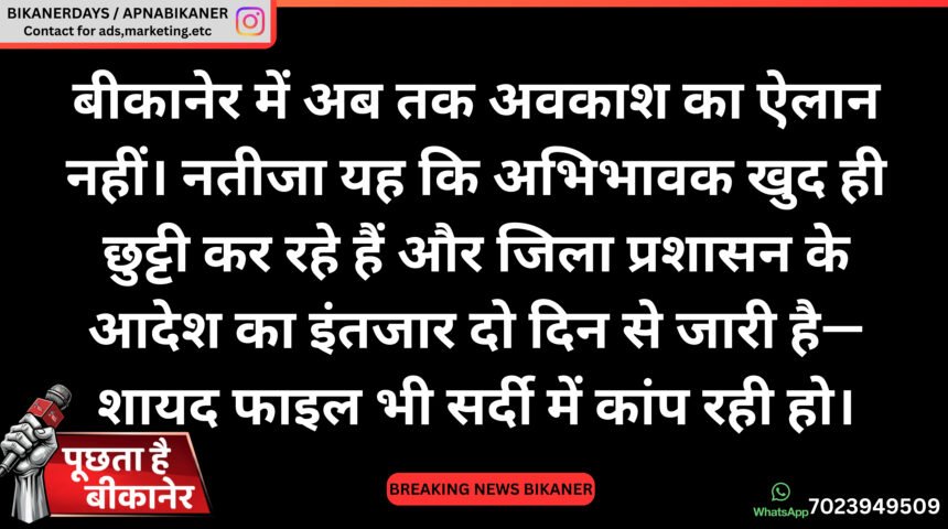 अब सवाल बस इतना है—जब कोहरा और ठंड दोनों पूरे फॉर्म में हैं, तो बीकानेर में छुट्टी का फैसला कब तक गरम होगा?