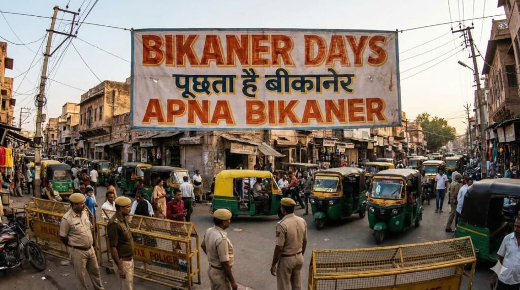 बीकानेर लाइन पुलिस चौराहे पर आज लोग घंटों फँसे रहे। करीब एक किलोमीटर लंबा जाम लग गया और सबसे चिंताजनक बात मामला तब बिगड़ा जब एक मूंगफली से भरी पिकअप गाड़ी का तिरपाल अचानक फट गया और पूरा सामान सड़क पर फैल गया। ट्रैफिक रुका, वाहन ठहरे और जाम एकदम लॉक की तरह जम गया।
