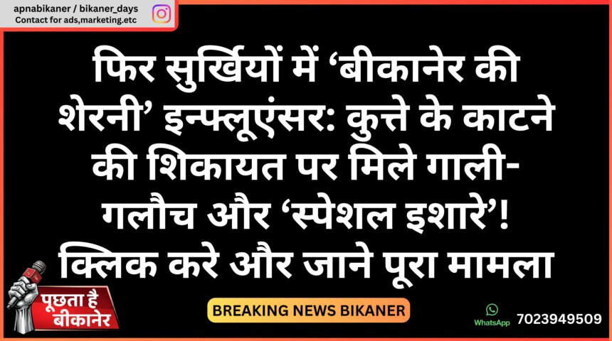 फिर सुर्खियों में ‘बीकानेर की शेरनी’ इन्फ्लूएंसर: कुत्ते के काटने की शिकायत पर मिले गाली-गलौच और ‘स्पेशल इशारे’!