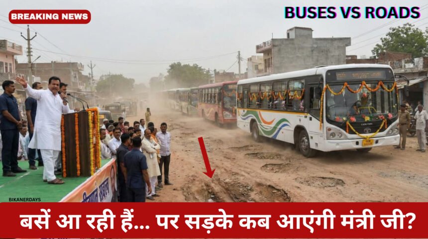 बसें आ रही हैं… पर सड़के कब आएंगी मंत्री जी?भाषण दौड़ रहे हैं, गड्ढों में शहर फंसा है!